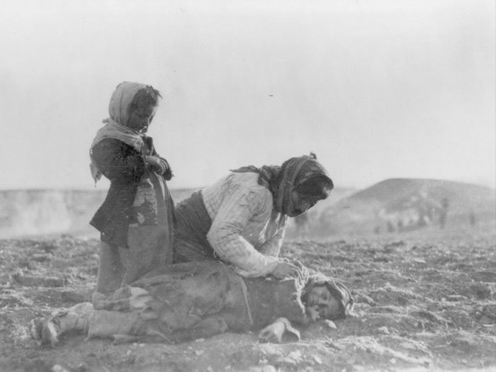 Un prétexte pour le gouvernement turc qui, à partir du 24 avril 1915, commence à emprisonner, torturer et assassiner à Constantinople plus de 2 500 notables et intellectuels arméniens. C’est le début de ce que les Turcs appellent le « transfert » de la population arménienne. Une entreprise qui fera entre 800 000 et 1,2 million de morts – hommes, femmes et enfants, abattus ou pendus par l’armée ou la police, abandonnés dans le désert le long de l’Euphrate pour mourir de faim, dévalisés par des bandes de malfrats et assassinés.