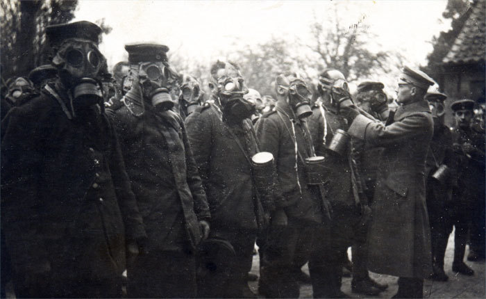 Soldats allemands lors d’une attaque aux gaz près de Saint-Quentin, 1918.