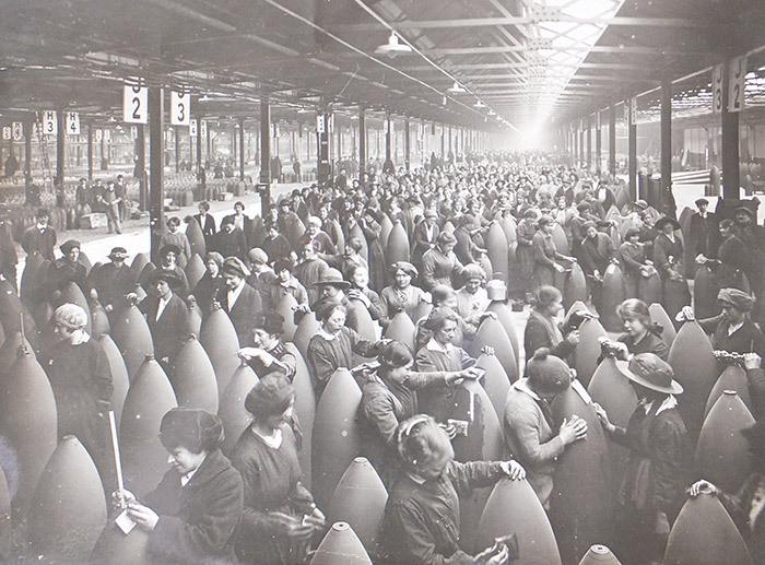 Avec le départ au front de millions d’hommes, les femmes doivent reprendre des fonctions et des métiers auxquels elles n’avaient jusque-là pas accès. L’industrie a désespérément besoin de femmes car les ouvriers ont été incorporés. C’est ainsi que des paysannes affluent dans les usines où elles sont affectées à la production d’armes. Il en va de même pour les servantes des maisons bourgeoises, elles aussi appelées dans les fabriques pour accomplir des tâches essentielles à la poursuite de la guerre.